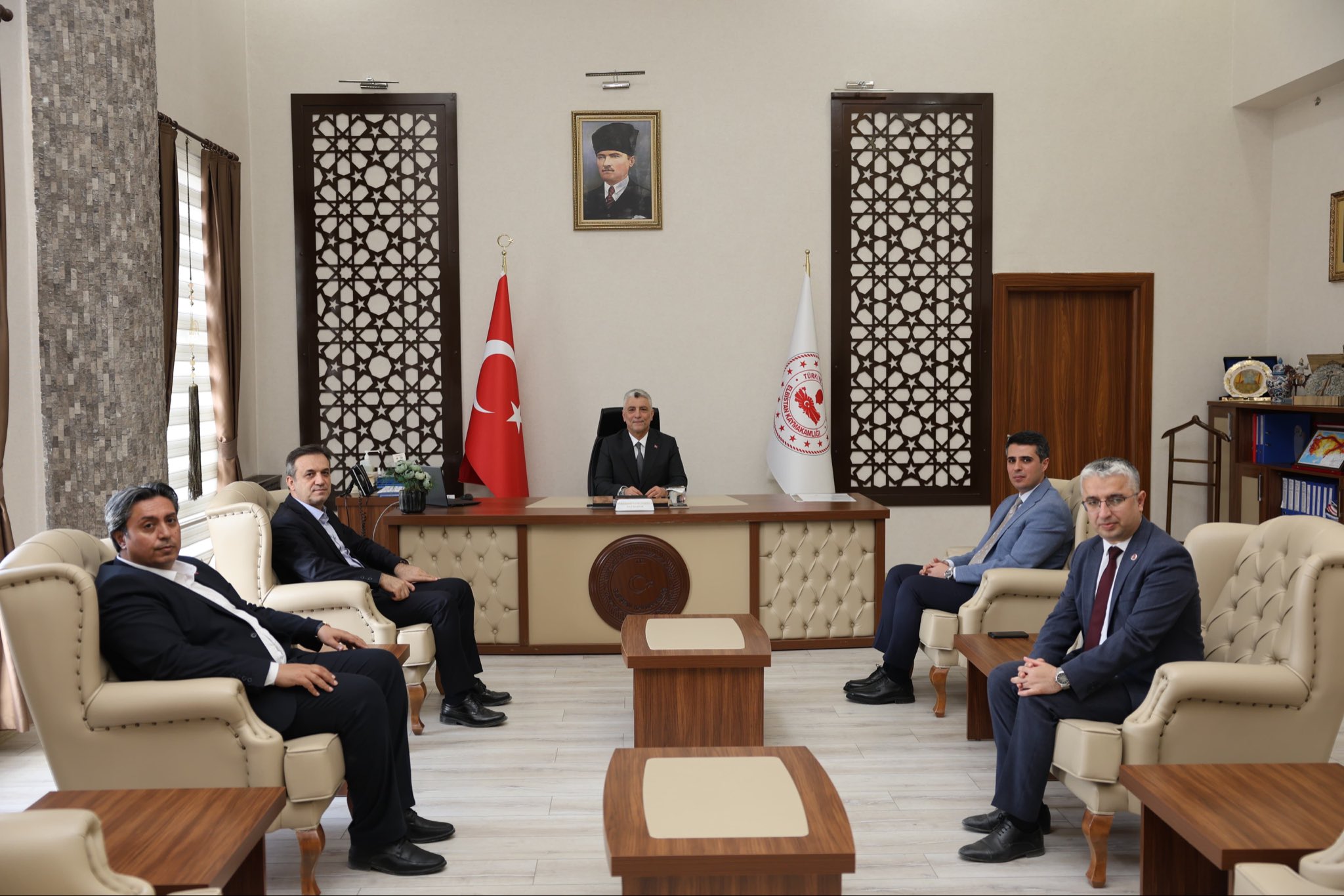 Cenaze programı kapsamında Kahramanmaraş’ta bulunan Bakan Ömer Bolat, AK Parti Kahramanmaraş Milletvekili Mevlüt Kurt ile birlikte Elbistan Kaymakamlığını ziyaret etti. Kaymakam Muhammet Fatih Demirel ile bir araya gelen Bolat, ilçedeki çalışmalar ve süreç hakkında bilgi aldı.